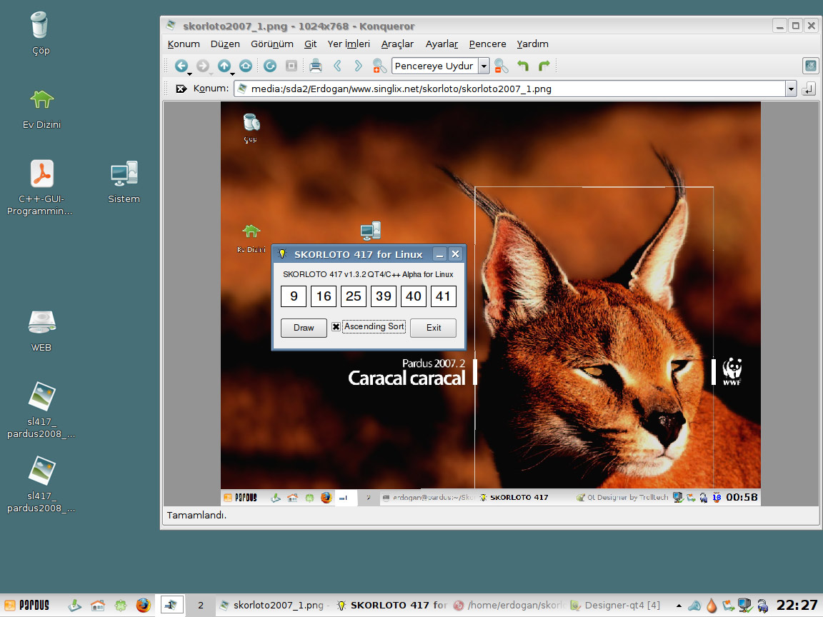 See Pardus 2008 desktop image (screenshot) with running skorloto program: skorloto_2008_1.jpg |